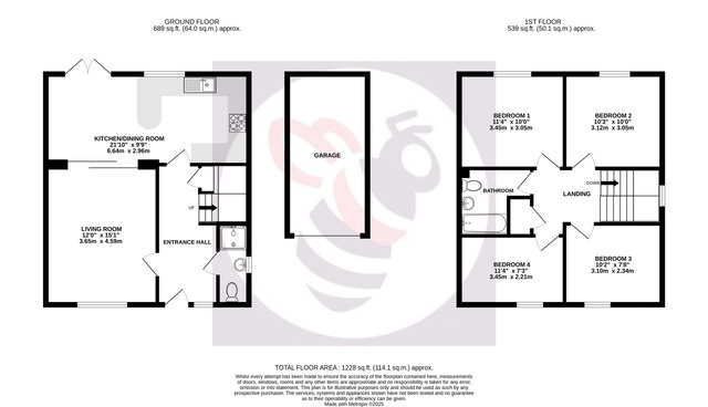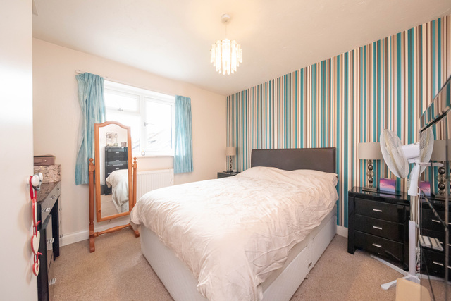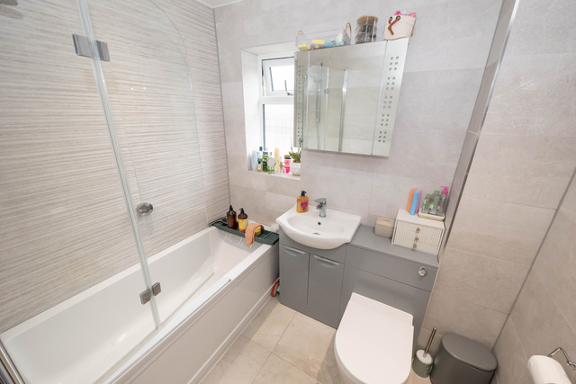 Upstairs offers four well-proportioned double bedrooms and a spacious landing. The modern family bathroom is fitted to a high standard, featuring a cabinet-mounted basin, low flush WC, and bath with shower and screen.