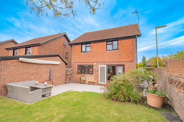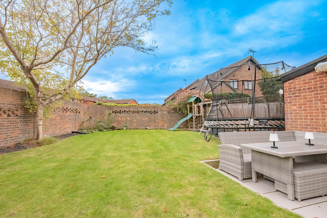 Outside, The rear garden has been recently landscaped, laid mainly to lawn with a generous patio area, and benefits from being one of the largest plots on the estate. You also benefit from a sunny south facing aspect. To the front and side, there is ample driveway parking in addition to a fully powered detached garage.