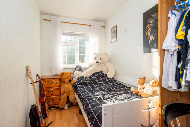 Upstairs, the property offers three well-presented bedrooms. The primary bedroom is generously sized, while bedrooms two and three provide excellent flexibility for children, guests, or home working. The contemporary family bathroom features stylish white metro tiling, a cabinet mounted basin, low flush toilet and an over-bath shower.